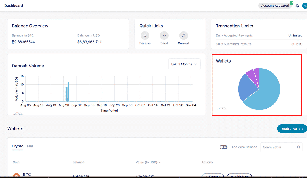 Manage all your crypto transactions effortlessly from one platform in the comprehensive dashboard, making it simple to track, analyse, and optimise your payment processes.